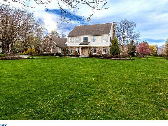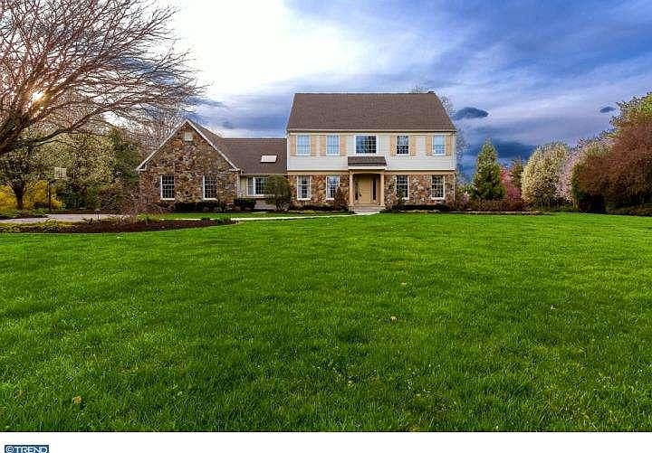 This center hall colonial with gorgeous stone exterior has been cared for and updated over the years by its architect owner. You'll be stunned as you take in the over 1 acre yard, 3 car garage, circular driveway, and gorgeous upgraded landscaping plan. Upon entering the front door you'll notice stained trim details and all oak hardwood flooring with flush mounted Oak HVAC grilles. To your right is the living room featuring two-piece dentil moulding crown and a bumped out wall of bay windows. When standing in the foyer, to your left is the dining room featuring a chair rail surround. Beyond the dining room is the completely updated kitchen featuring cork flooring and granite countertops. Two islands are in the kitchen, each with its own stainless steel sink. Appliances include stainless steel Wolf convection ovens, warming drawer, and range, commercial range hood, and Sub Zero refrigerator/freezer. U-Line beverage fridge is housed in a hutch, and a wine rack is on one of the islands. The family room is adjacent to the kitchen featuring a brick gas fired fireplace with panelized built-in cabinetry above and a coffered ceiling. A solarium runs across the rear of the home featuring great views of the back yard and giving the home a very open floor plan feel. Alongside the kitchen is a mudroom, back hall, office, laundry room, and garage access. The main set of stairs goes up from the front foyer to a wrap around hallway accessing all four bedrooms. Three of the bedrooms access one large shared bath, and the master has it's own suite. The master bedroom features inlaid oak hardwood floors, walk-in closet, crown molding, a whirlpool tub, separate shower stall, two vanities, and a skylight in the bathroom for natural light while getting ready in the morning. This home has been updated in nearly every way and features all modern amenities perfect for a buyer to move right into.