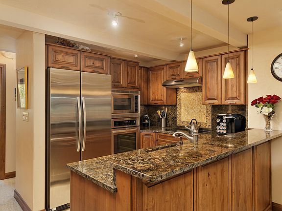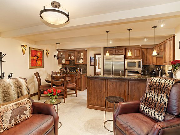 Enjoy in-town convenience walking distance to Aspen's best restaurants, galleries and shops at Midland Condo #6! Ski or snowboard down Little Nell and take a short stroll through Glory Hole Park to your backdoor. Watch ducks parade across the park from your private, second floor, west facing covered patio with BBQ, dinette and lock-off storage. A beautifully remodeled one-bedroom unit with solid slab granite countertops, stainless-steel appliances, travertine, and custom alder cabinets and built-ins. A wood burning fireplace warms the living room. A stackable washer/dryer is located in the bathroom. Sold fully furnished, move-in ready offering brand new living room furniture. Off street reserved parking is available, but you'll never need to drive in this location. Enjoy views of Smuggler