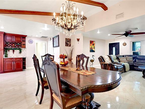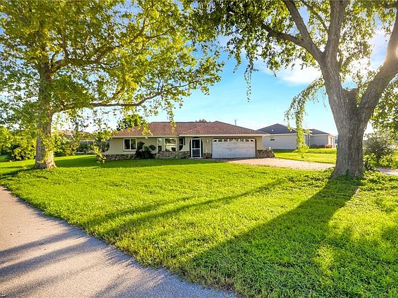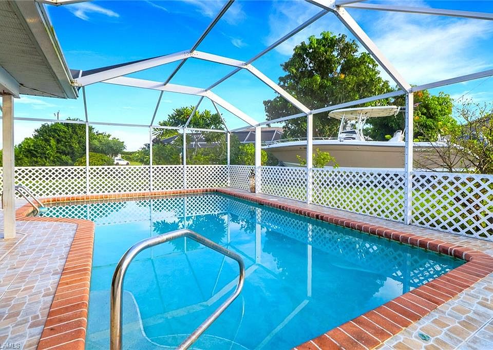 This beautifully maintained 3-bedroom, 2-bath pool home offers the perfect blend of comfort, style, and true Florida living on an oversized .27-acre corner lot with mature landscaping. Step inside and be greeted by a light-filled split-bedroom floor plan enhanced with recessed lighting, large tile flooring, and impact-resistant windows throughout. The inviting living and dining areas flow into a newly remodeled guest bathroom, creating a fresh and modern touch. The well-appointed kitchen is a chef’s delight, featuring granite counters, stainless steel appliances including a range, Colonial-style Smoke Cherry custom cabinets, and a tiled backsplash that adds both charm and function. With plenty of cabinet space and open flow, entertaining is effortless. Enjoy the best of indoor-outdoor living with a screened lanai overlooking your sparkling private pool—perfect for relaxing afternoons or lively family gatherings. The expansive backyard offers space for gardening, pets, or simply soaking up the Florida sunshine. The primary suite boasts a walk-in closet and a bathroom with a stunning standing shower. Freshly painted interiors provide a crisp, move-in-ready feel. 2-car garage with laundry area, Concrete block construction with exterior accents, Central heating and cooling with ceiling fans, Oversized corner lot. Nestled in a quiet, non-gated community with no HOA fees, this home is just minutes from shopping, dining, and Cape Coral’s vibrant waterfront lifestyle. Whether you’re seeking a primary residence, seasonal retreat, or investment opportunity, this property delivers everything you need to embrace the Southwest Florida lifestyle.