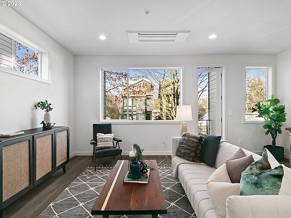 New construction condo living in sought-after Sellwood, blocks from riverfront dog park, New Seasons & restaurants. Open-concept 1,364 sqft upper unit: 2 beds, 2.5 baths, washer/dryer + covered deck off living. Quality at every turn: quartz counters, custom tile work, engineered hardwoods & matte black hardware. Rare condo luxuries: vaulted ceilings in bedrooms, A/C & Heat Mini Splits, & a walk-in closet in the primary. HOA provides bike storage, some utilities & ease of low-maintenance living.