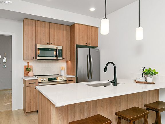 New construction condo living in sought-after Sellwood, blocks from the riverfront dog park, New Seasons & restaurants. This open-concept ground floor unit includes 1 bedroom, bathroom, washer/dryer + front patio perfect for relaxing. Quality at every turn with quartz counters, custom tile work, engineered hardwoods, eat bar & matte black hardware. System upgrades: closet organization built-ins + A/C & Heat mini splits. HOA provides bike storage, some utilities & ease of low-maintenance living.