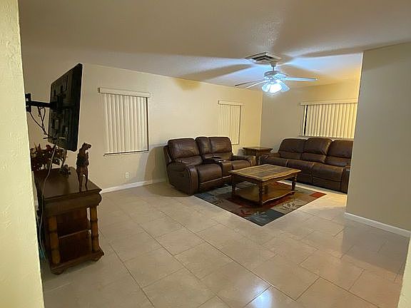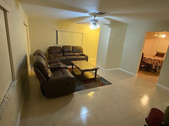 Beautiful, spacious three bedroom, two bathroom home. Newly updated bathrooms, flooring, freshly painted and more. Three bedrooms with two walk-in closets. Large fenced in corner lot. Four parking spaces and a carport. Beautiful large living room with knockdown and freshly painted. Close to I-95, schools, park and shopping plaza's. Large separate laundry room with plenty of space for storage. Formal dining room. Newer a/c in 2019. Hurricane shutters. Ready to move in condition.