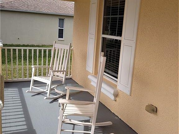 HERE IS A MOVE-IN READY HOME! Are you tired of taking care of a pool, well you don't have to at this house! Welcome to this "just right" 3-bedroom, 2-bath home with LARGE fenced-in back yard to enjoy from your lanai or participate with Bar-B-Q pit and roast marshmallows, horse shoes, corn toss or badmitton. More enjoyment can be found on the railed front porch to sit and watch your friends and neighbors while they are out and about. This home has been freshly painted outside within the last six months, and the interior of the home was completely painted a soft neutral creamy color in January 2020. The tile and grout floors throughout the house were also polished in January 2020. This home is ready for you to move right in and is available for a quick closing. The living room, dining, and kitchen make a great room with vaulted ceilings. The bedrooms are split with the master bedroom on the east side of the house and the two guest bedrooms are on the west side of the house.
