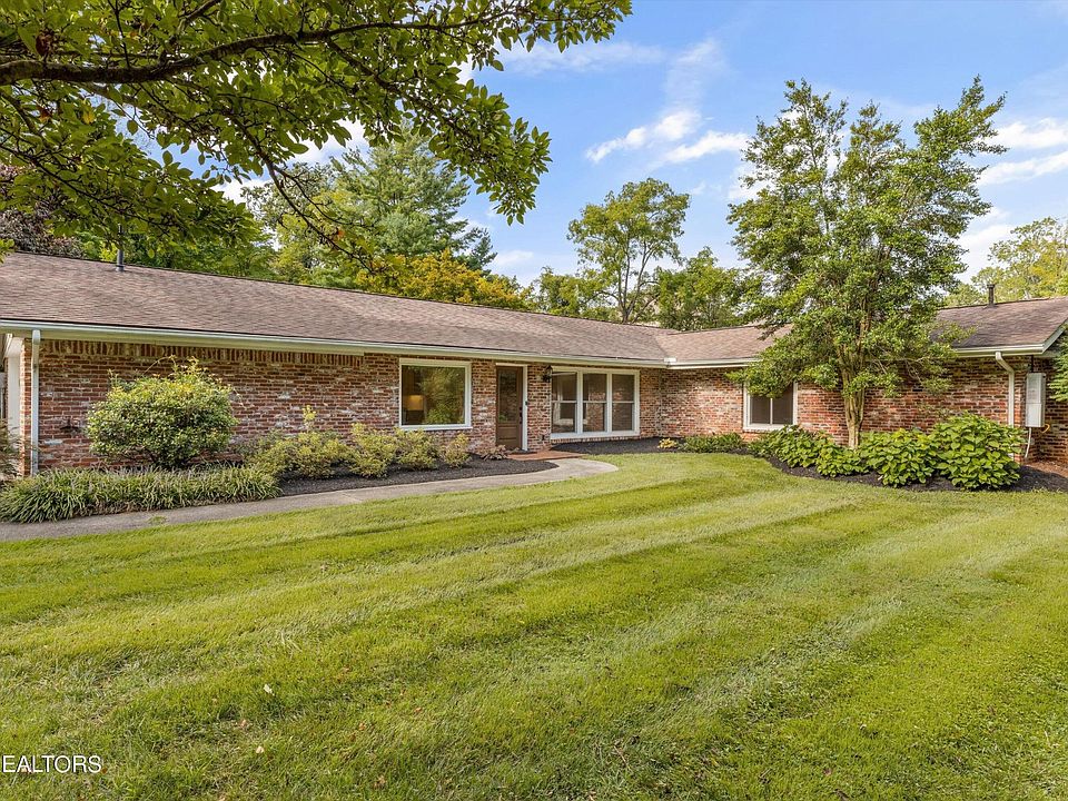THIS...Westmoreland midcentury classic is the ONE! Charm and elegance combine perfectly in this updated ranch home situated on 1.2 level acres. The open floor plan and large new windows provide beautiful light, wonderful flow, and plenty of space for you. 3 bedrooms and 3 full baths, all updated, light and bright. large closets, with huge living spaces. The elegant kitchen offers custom cabinets, quartz tops and gourmet appliances as well. Adjoining the kitchen is a spacious pantry and laundry area with custom cabinetry. The primary suite is inviting, with its own fireplace; Ensuite includes tile shower and soaking tub. A sunroom off the primary bedroom has potential as a bonus,office ,exercise room or additional living space. Detached climate controlled 600 sq ft entertaining area with commercial grade gas stove, full vent hood, stainless steel prep tables, refrigeration units, kegerator and a 10 ft bar,that is a perfect at home getaway and entertaining space. Large fully-fenced, park-like backyard. Superb privacy in one of West Knoxville's premier neighborhoods