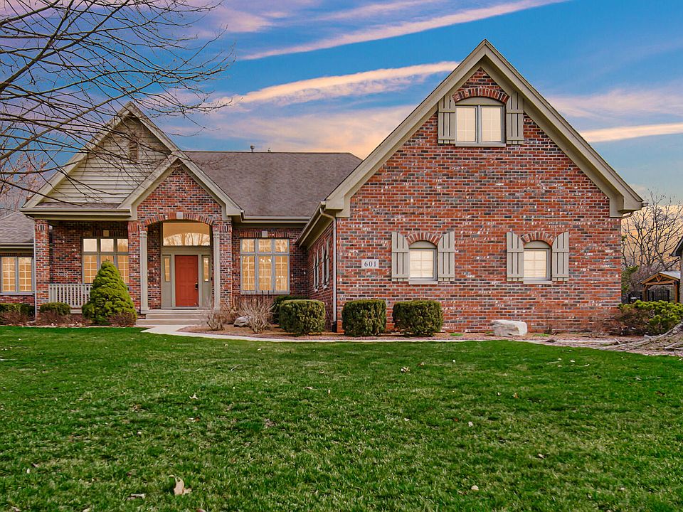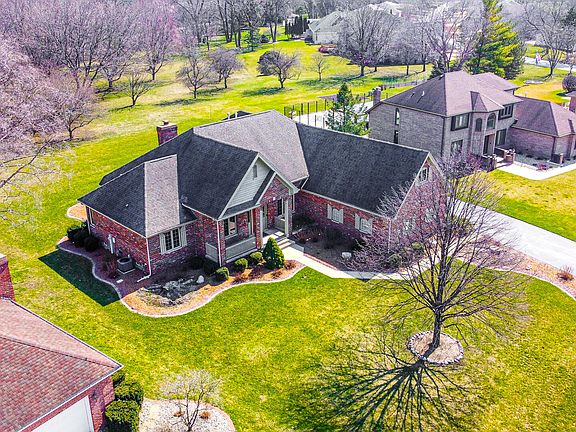 Located in the gated golf course community of Briar Ridge Country Club, this beautiful brick ranch has it all! Wonderful curb appeal with 3 car side-load garage, professionally landscaped, sitting om 100x200 lot with very private backyard overlooking wooded green belt. Features large main bedroom with sitting room area, double walk-in closets, & full ensuite with double bowl vanity, whirlpool tub & separate shower with double shower heads. Split floor plan has 2 bedrms on opposite side of home, another full bath, & 3rd half bath. Great rm features high vaulted ceiling, beautiful real masonry fireplace overlooking backyard. large foyer with high ceiling is flanked by Formal Living Rm, & Formal Dining Rm. Updated kitchen with new light fixtures, new tile backsplash, & new quartz countertop. Upstairs you'll find a huge 4th bedrm with full bath, all new carpet, & attached unfinished area over garage, for more living space. Main floor has hardwood floors throughout. Whole house is very clean, & has been freshly painted. Huge unfinished basement with 9ft ceiling & rough-in for bath. Furnace 2021; HWH 2021; Carpet 2021. This house shows beautifully & is in move-in condition.