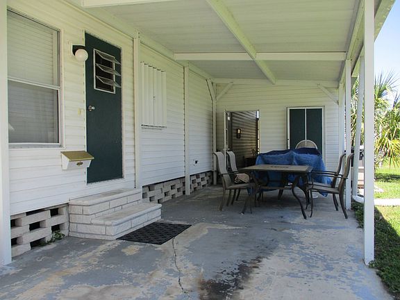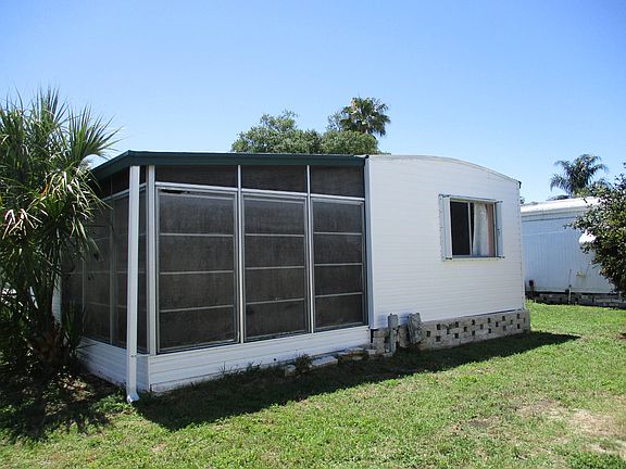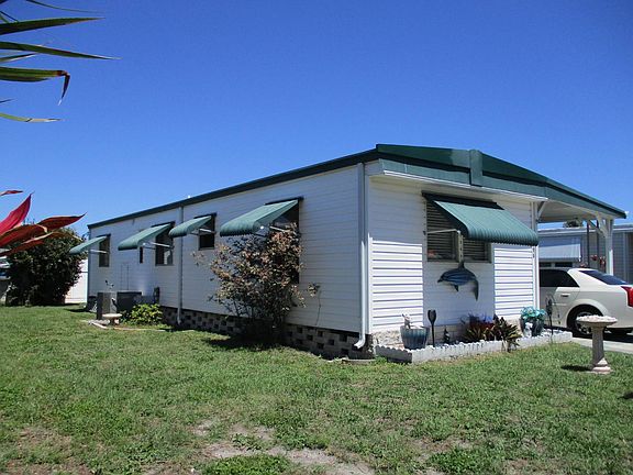RESPOND TO LISTING AGENT for more info or to view this great Furnished 2/1 LOCATED IN 55+ East Bay Oaks (often allowing 40+) with community pool, clubhouse and activities. Scooter chair, walk/bike to shopping, restaurants, banks and just about 6 MILES from SUGAR SAND GULF BEACHES. Two small dogs or indoor cats allowed.Monthly lot rent/maintenance fee covers water/sewer, lawn, trash, approximately $750.~~~Check out this FURNISHED 2/1 with GREAT CURB APPEAL, OPEN CONCEPT EAT IN KITCHEN/LIVING AREA, SOLID SUB FLOORS, COATED METAL ROOF, NEWER AC/HEAT, NEWER 30 GALLON WATER HEATER, WASHER/DRYER (2020), UPDATED BATH and a PRIVATE SCREENED ROOM on the rear of the home. LONG CARPORT can park 2 cars or use some as Patio as current owner is doing. Please Note: There are new paneled closet doors that the Buyer can install on bedroom closets, or not.~~~LIVING ROOM furnished with DOUBLE RECLINER SOFA, ROCKER RECLINER, TV and occasional pieces.Ceiling Fan in Living Room.~~~KITCHEN has newer Fridge (2021), Stove, Updated Faucet and some updated plumbing (Kitchen and Bath). Dining Table/Chairs. ~~~HALL Has a Floor to Ceiing Storage Closet and also a Linen Closet outside the Bathroom. ~~~Bath has an updated Tub/Shower, Beautiful Marble Tile Floor, Updated Toilet, Updated Vanity and a New Window. ~~~SMALL GUEST BEDROOM with new plywood subfloor ready for your own choice of floor covering.~~~MASTER BEDROOM is Large and has a Queen Poster Bed, Dresser, Chest and occasional pieces. Both bedrooms have Ceiling Fans.~~~All rooms freshly painted. Guest Bedroom is Drywall. ~~~SCREENED ROOM is approximately 150 sq. ft. and is at the rear of the Carport/Shed offering great privacy! NICE LOT, more spacious than many. NOTE the last photo showing the Purple LED Tube Lighting around carport and highlighting the dolphin on the front. Lighting isn't done justice by this photo, but lighting looks great at night!~~~RESPOND TO LISTING AGENT for a viewing or more information. CASH SALE ONLY.