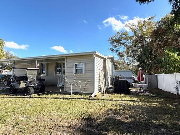 Absolutely stunning newer home built in 2019 has 3 bedrms and 2 baths. Home is light and bright with an inviting open concept living. The spacious kitchen is a chef's delight with a gorgeous oversized island, enticing you to entertain all your family and friends. Bedrooms are quite large, the primary can fit a king size bed with lots of room to spare, second bedroom is perfect for guests and the third bedroom with french doors is currently used as an office. Modern "Fandeliers", beautiful floors, thermopane windows throughout, and new hurricane shutters are special features. This home remained untouched, high and dry from recent hurricane activity. Enjoy the Florida lifestyle sitting on your welcoming front porch, large carport fits 2 cars, also room for a golf cart. Plenty of storage in the shed, private backyard plus a crawlspace under home all situated at far corner of the park for low traffic. This is a pet friendly, active age qualified community near beaches, theaters, restaurants, and shopping. Relax in the pool or hot tub, workout in the gym, play shuffleboard, and enjoy activities in the clubhouse. Water, sewer, trash, lawn care, and amenities are all included in the $1048 a month lot rent. Fast closing is possible so come and see and bring an offer! All listing information is deemed reliable but not guaranteed and should be independently verified through personal inspection by appropriate professionals. Integrity Mobile Home Sales cannot guarantee or warrant the accuracy of this information, measurements, or condition of any property. Measurements are approximate. Lot rent subject to change.
