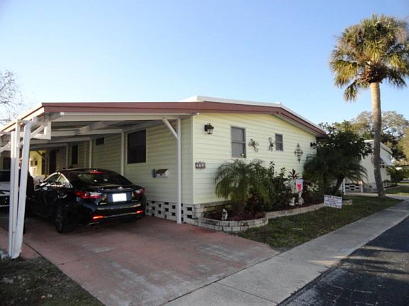 RESPOND TO LISTING AGENT NOW FOR VIEWING OR MORE INFO ON THIS SPACIOUS 2/2 HOME ABUTTING PARK GREEN SPACE AND BY POOL/CLUBHOUSE. 40+ PARK W/2 POOLS, CLUBHOUSES, ACTIVITIES. PET FRIENDLY. LOT RENT $660/MO. COVERS Water/Sewer/Lawn/Trash/Recycling. CLOSE TO GULF BEACHES, SHOPPING, EVERYTHING. PET FRIENDLY (25 lbs. or less) MOTORCYCLE FRIENDLY, 40+ (if currently space for 40, if not, 45+). PARK CREDIT/BACKGROUND CHECK REQUIRED.~~~WHAT A LOVELY FURNISHED 2/2 ON A GREAT LOT BY PARK COMMON GROUND. FROM YOUR OWN PATIO, YOU CAN STROLL RIGHT ACROSS THE GREEN TO THE POOL AND CLUBHOUSE!~~~IMPORTANT FEATURES OF THIS HOME ARE: METAL ROOF OVER, LAMINATE, WATER HEATER APPOX. 4 YEARS, NEWER VINYL WRAP TUB/SHOWER IN GUEST BATH, AIR CONDITIONED FLORIDA ROOM WITH GREEN SPACE VIEW, LONG WIDER CARPORT (EASILY PARK 2 CARS), SHED WITH WASHER/DRYER AND STORAGE. THIS HOME HAS LARGE WINDOWS WITH MARBLE WINDOW SILLS, NICER THAN MANY SIMILAR HOMES.AMAZING AMOUNT OF STORAGE THROUGHOUT: HALL CLOSET, LINEN CLOSET AND HAMPER IN GUEST BATH, 2 HUGE CLOSETS IN MASTER EN SUITE, BUILT IN CHEST, 3 CLOSETS IN GUEST ROOM.~~~THE LARGE AC'd. FLORIDA ROOM HAS A LAMINATE FLOOR, LARGE WINDOWS AND ITS OWN PRIVATE ENTRANCE. ENTER THE MAIN LIVING AREA FROM FLORIDA ROOM THROUGH SLIDER.~~~CUTE KITCHEN HAS TILE BACKSPLASH, LOTS OF CABINETS, FRIDGE W/ICE MAKER, PANTRY CLOSET AND A COFFEE BAR W/2 STOOLS.THERE WILL BE SOME DISHES, GLASSWARE, POTS/PANS.~~~LIVING ROOM FURNISHED WITH WALL UNIT, TV, LOVE SEAT, AND OTHER SEATING PICTURED. 2 MIRRORS WILL NOT REMAIN. SELLER WILL TAKE HER PERSONAL ITEMS, PHOTOS AND POSSIBLY SOME DECOR ITEMS.~~~STYLISH DINING ROOM TABLE/4 CHAIRS.~~~BOTH BEDROOMS FURNISHED. PLEASE NOTE: THE ONLY TV REMAINING IS THE LIVING ROOM TV.~~~PATIO FURNISHED AS PICTURED. RESPOND TO LISTING AGENT TODAY FOR A VIEWING OR MORE INFORMATION ON THIS GREAT HOME!