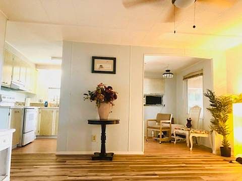This 2 BRM 2 BATH home has been just remodeled with new hardwood floors, freshly painted and updated to perfection. Extras galore! . East Bay Oaks is centrally located, near shopping and beaches. This is an age 55+ community that permits ages 40+ to apply. 2 smaller dogs alloyed. Beautiful active clubhouse with swimming pool and many activities and amenties for the residents. . Ask for John Swick who also lives in the park.