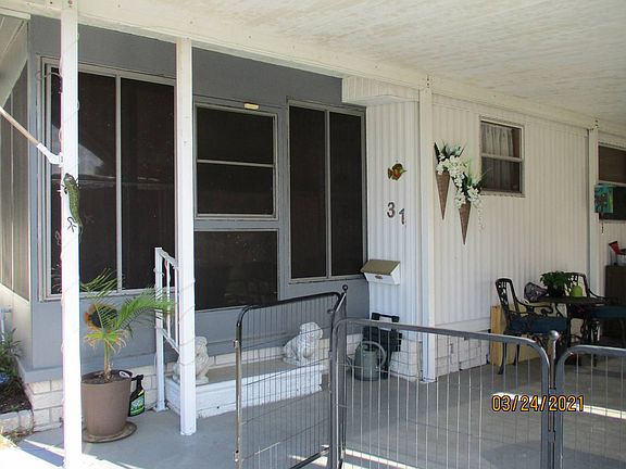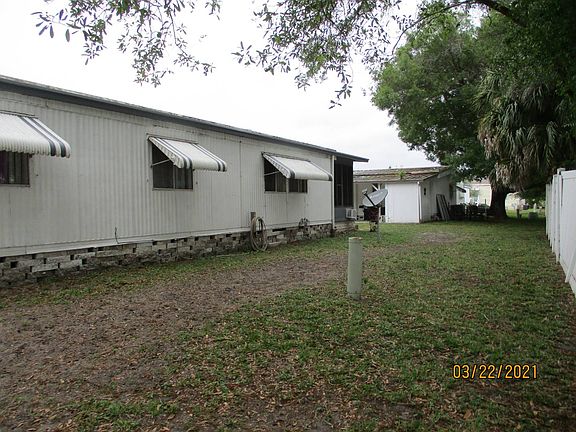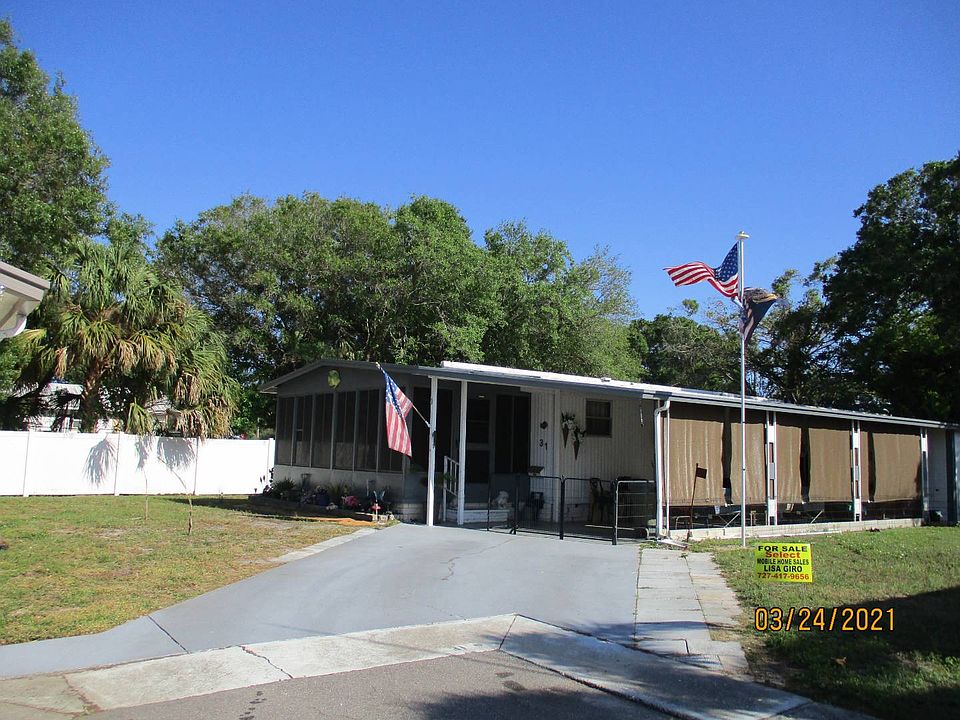 DON'T HESITATE, RESPOND TO LISTING AGENT TODAY for viewing/more info on this large, affordable 2/2 with Huge Enclosed FRONT LANAI located in 45+ park with 2 pools, clubhouses, activities. Pet Friendly. Lot rent of approximately $750/month covers w/s/lawn/trash. Close to Gulf Beaches, Shopping, Medical, Everything! Park Credit/Background check required.~~~CHECK OUT THIS GREAT 1256 sq. ft. 2/2 WITH EXPENSIVE UPGRADES: NEW VAPOR BARRIER (2019), UPDATED ELECTRIC PANEL (2016), NEW AC in LANAI (2019) NEW FRIDGE (2019), SOLID SUBFLOORS, NEW VINYL TILE in Kitchen, Roof Over, Freshly Painted Exterior/Interior and Clean/Not Smoked in, AMAZING LARGER LOT with YARD and LOTS OF PARKING. Additional Upgrades: Newer Ceiling Fans, 4 updated windows, Newer, Better Quality Shades, Updated Plumbing under Kitchen/Bathroom Sinks and New (2020) Shower in Guest Bath. ~~~ENCLOSED AIR CONDITIONED LANAI with it's own Exterior Entrance and accessible by Slider to Main Living/Dining Area. This Approx. 200 sq.ft. lanai could possibly be used as an additional bedroom, den, whatever. Lanai has newer Vinyl Screen Covers, better shades.~~~Laminate and Vinyl Flooring throughout.~~~ LARGE UPDATED KITCHEN: Newer appliances (approx. 4 yrs.), except for Newer Fridge, updated sink/faucet, updated cabinets/counters, LARGE PANTRY + Smaller Cabinet Beside Pantry. ~~~LIVING/DINING is L SHAPED w/SLIDER to Front Lanai. ~~~Tons of storage throughout this home: Hall has 2 closets, Dining has Updated Buffet/cabinets (currently as Office Station), Master Suite has 2 closets, one is a walk-in.~~~FURNISHINGS INCLUDED are Living Room Furnishings (TV, Rugs Included), Dining Room Set/Rolling Bar (not bar stools), Kitchen stocked with some dishes, silverware, All Appliances, Carport Grill and Outdoor Table/3 Chairs + Table behind house Remain. NOTHING IN BEDROOMS, NO PICTURES or Glassware on Curio Shelves.~~~Oversized shed w/Washer (2016)/NEW Dryer(2020) painted floor, Shelving. LARGE CORNER LOT with privacy located on PERIMETER of park. Long carport with better quality sunshades. Extra Long Driveway in addition to the larger carport. Priced to sell fast! DON'T HESITATE, SUPER DEAL, respond to Listing Agent now for a viewing! CASH ONLY.