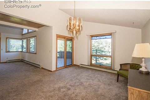 Spacious free-standing condo with outstanding views. Enjoy 2552sf of comfortable living featuring open floor plan, great room w/fireplace & vaulted ceilings, large kitchen, dining area plus main floor master suite & laundry. Walk out lower level includes family room, 2 bedrooms, full bath & large storage area. Spend summer days on the deck overlooking open space & use the 2 atrium to enjoy Continental Divide views year round and add passive solar heat. Easy walk to town & just minutes to RMNP.