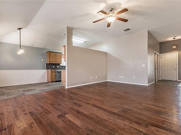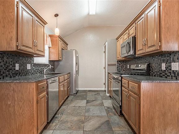 Very nice home on a corner lot in Edmond. Galley Kitchen with granite counter-tops with appliances. Vaulted ceiling in the large master suite with ensuite bath with granite. Hardwood floors in Living. Huge fenced backyard with shade trees. Green belt across the street. Must see!