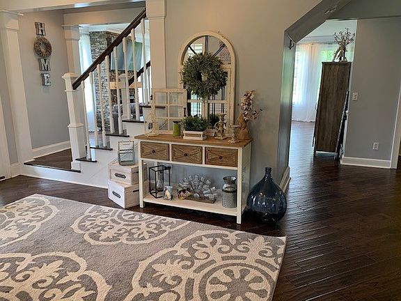 ENJOY THE PRIVACY OF THIS GORGEOUS ESTATE ON 6.9 ACRES. Step into the wide entrance foyer with hardwood floors. Relax in the open Great room with stone fireplace and wall of new windows. Light and airy Kitchen with white cabinets and new granite countertops, stainless steel appliances and tile backsplash. Dining area with chair rail and wide Plantation Shutters. Built in desk with computer area. Lg. Master Suite on the main level w/his and her walk in closets. Luxurious Master Bath with tile walk in shower and jetted tub, double vanity. 4 Bedrooms, 3 1/2 Baths, plus Lg. Bonus room w/adjoining Bath. Lg. Screened in porch. Oversized 2 car garage, plus detached 2 car garage which is only 2 years old. Fenced pasture, barn and creek w/running water year round.