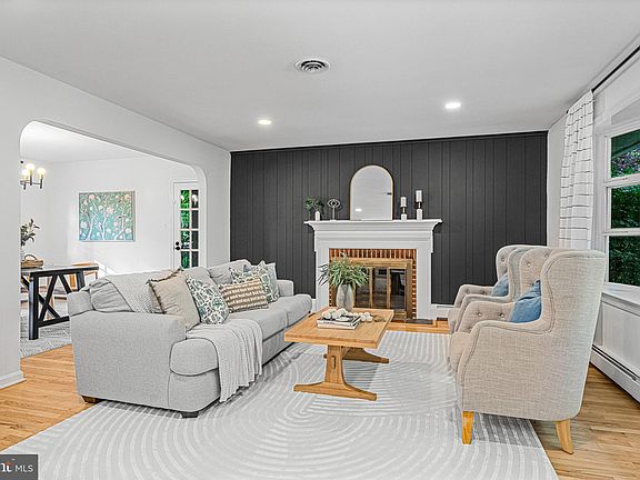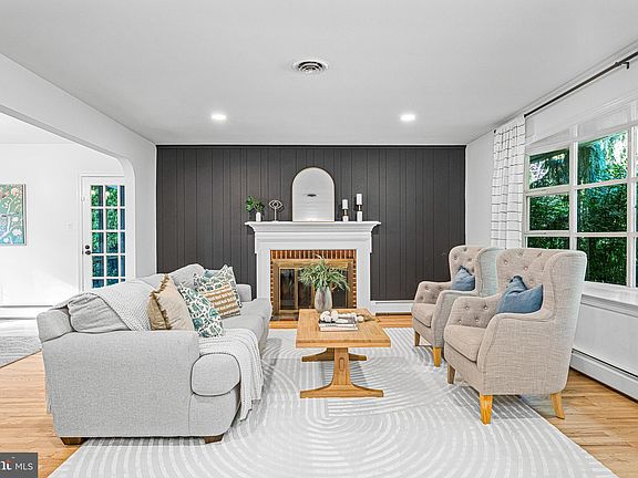Welcome home to this brick beauty located in the quiet neighborhood of Collins Park! This stunning home has been meticulously remodeled with no expense spared. Curb appeal abounds with a brick facade and large two-car attached garage. Entering in you will immediately appreciate the hardwood floors that have been refinished throughout. The sunlit living room has a large bay window overlooking the front yard, as well as a cozy wood burning fireplace. A large archway leads to the dining space, which has been opened to the kitchen with access to the serene screened in side porch. This tranquil, private slate porch, with views of the backyard has the original outdoor oven still intact! The kitchen boasts a large peninsula island with space for stools, storage cabinets under the island, open shelving, a breakfast nook and a large picture window overlooking the backyard. Additional updates include all white cabinets with brass hardware, a subway tiled backsplash, white quartz countertops and stainless steel appliances. Heading upstairs, there are three bedrooms and two full bathrooms. The primary bedroom features two closets, one of which is a walk-in, as well as an updated ensuite bathroom with beautiful black and gold patterned tile, and a shower with a herringbone tiled floor and subway tiled walls. The additional bedrooms are spacious with great closets. Rounding off the second floor is the renovated hallway bathroom with patterned hex tiles, open shelving for extra storage, two sinks, and a modern bath/shower combination with subway tile and a sliding glass door enclosure. Downstairs features a powder room straight out of The Beverly Hills hotel with palm frond wallpaper and gorgeous black and white tiled floors. This floor is also home to the large family room with sliding glass doors out to one of the two exterior patios. Finally, there is access to the large two-car attached garage with additional shelving for more storage. The final floor of this home has been partially finished with walk-out access to the backyard offering so much potential as an additional recreation room, a gym space, or playroom. The basement also conveniently houses the washer and dryer. The sprawling, fully-fenced yard is a show-stopper! Spend summer nights hosting BBQs with all your friends and neighbors! This home is a short walking distance to all the shops and restaurants on Main Street in Moorestown as well as Mary E. Roberts Elementary School and Strawbridge Lake! Don't miss your opportunity to be only the third owner of this incredible home!