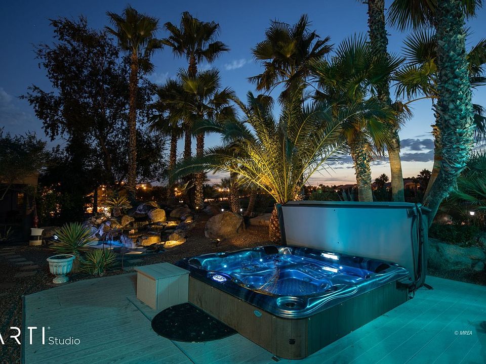 LOCATION!! LOCATION!! Built on the 17th Hole of the Oasis Golf Course!. Walking distance to Local Casinos. Built in a quiet cul-de-sac with extra parking available Mesquite Vistas Amenities included .This Home has Been Newly Remodeled and it is Beautiful. Two Master Bedrooms with Walk In Closets and Walk In Showers. Downstairs Master has a jetted soaking tub. A Beautiful 6ft Glass Chandelier hangs over the living room.. Open Kitchen with Granite Counter tops, Stainless Appliances and under/over counter lighting. Modern Lighting in Kitchen and Dining Room. Large Open Windows New Air Condition/Heat Unit, 2 Water Heaters Water Softener. Painted in Grey Tones with white trim. Open Floor plan with large bedrooms. The Master upstairs has a balcony overlooking the golf course and city. Large over sized garage with shelves and room room for a golf cart. The backyard overlooks the Oasis Palmer 17th Hole and all its beauty. Located on a large lot .21 Acres. ROOM FOR A POOL This home has an outdoor Water Feature and in Inground Hot Tub. Landscaped beautifully with lights and trees. A dog Run is also included in this beautiful home