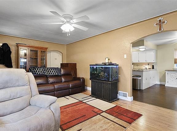 Welcome home! Cute 3 Bed/ 2 Bath includes a 2 car garage & above ground pool on a spacious corner lot! Features include arched ways, main level laundry, walkout basement, newer lam flooring, doors, & custom blinds*The large Family Rm has a barrel ceiling, lots of windows for natural light, and flows into the Breakfast Rm*A bright Kitchen with white cabinets accented by the custom tile backsplash & countertop also includes a newer refrigerator*There are two main level bedrooms both with ceiling fan*The full hall bath includes CT flr, wainscott & sconce details, and a walk-in shower with assist handles & fold-away chair*Recent lower level finishes have added comfort & additional living space including a Bedroom & possible Sleeping Rm, large Rec Rm, and second full bath with walk-in shower*The spacious yard has fencing, providing safety for pets, and an above ground pool with decking for entertaining & relaxation*Conveniently located to schools & parks! Make this your new home!