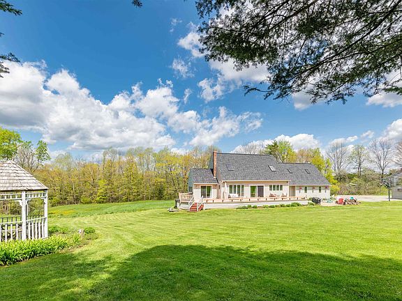 Fall in love with your future forever home. Excellent location, well-maintained, beautifully landscaped, with plenty of privacy and seclusion on 5.08 acres. Inside you will find quality craftsmanship in this luxurious three bedroom, three bath cape. With natural light beaming through the wall of windows and glass sliding doors opening onto the large deck, overlooking a beautifully manicured lawn. Relax in the outdoor hot tub or enjoy some quiet time in the four-season sunroom. Whether you’re entertaining around the campfire on the front patio or around the kitchen island, you’ll find plenty of space to gather. Upon entry, you will find a full breezeway with a large coat closet and direct access to the attached two car garage and entry to the large, open concept, kitchen and dining area. With oversized cherry cabinets, granite countertops, and stainless-steel appliances. There is an elegant flow from room to room from the kitchen to the living room with vaulted ceilings and two main floor bedrooms with a full bath. The stylish spiral staircase will take you to the full floor primary suite. The loft, currently an office, and the primary bedroom has a large walk-in closet and a second full bath with a combination walk-in glass/tile shower. The insulated space above the garage has plenty of space for storage. Below the main floor you will find a partially finished basement including a large family/game room and third bath and additional bonus bedroom with a full-length closet.
