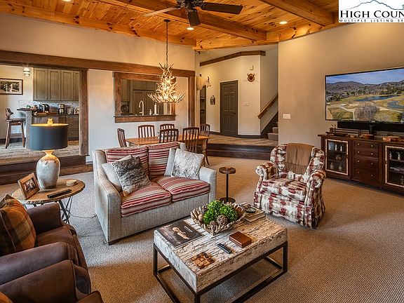 Hound Ears Condo with mount and golf course views. Recently remodeled with a fabulous mountain feel. The pictures speak for themselves. This 3-bedroom 3.5 bath condo is being sold furnished with exceptions, and has tall ceilings throughout the unit, with lots of room. The master suite is oversized with his and her bathrooms. Two other good-sized bedrooms, each with private bathrooms, leaves plenty of room for guests. Enjoy the large covered deck for conversation or watch the golfers down below on the 13th green. Also, a large carport with golf cart storage is below the building. Hound Ears Club is a gated community centrally located between Blowing Rock, Boone and Banner Elk, Location!! Memberships are separate for purchase and include fine/casual dining, golf, tennis, pickle ball, swimming pool with rock waterfall grill onsite with drinks and dining options, fitness center. As a Homeowner enjoy hiking trails, community garden, Grover's Dog Park, Watauga River access, picnic & park to sit and enjoy the sounds of the rushing river.