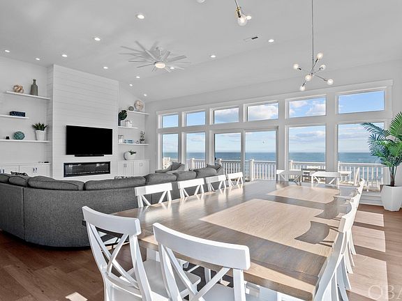 This is the one you’ve been waiting for! Beautiful new construction, turn-key, fantastic rentals, views for days, and so much more with this drop-dead gorgeous Corolla oceanfront! Enter a realm of coastal splendor, in which no expense has been spared. This masterpiece, built in 2022, is a testament to luxury living. The owners diligently crafted a haven of sophistication, which is evident in the top-notch features and appliances. The kitchen is a culinary delight, equipped with a countertop range, two wall ovens, two larger refrigerators, and two dishwashers. Imagine preparing gourmet meals with the backdrop of sweeping ocean views. The top floor features a spacious seating area, creating a central hub for gatherings and culinary delights with plenty of seating and an electric fireplace for those fall evenings. Beyond the kitchen, every inch of this home exudes quality and craftsmanship. From the nine ensuite bedrooms to the top-floor living spaces with expansive windows, offering the most breathtaking views of the ocean, the residence showcases thoughtful design. Each spacious bedroom is beautifully decorated with top quality furniture/décor, and upscale, private bathrooms. Practicality meets elegance with an elevator that seamlessly connects all three floors, ensuring convenience for residents and guests alike. The equally luxurious ground floor unveils an outdoor private pool area with a cabana, hot tub, several seating and lounging areas, and outdoor showers, offering a retreat within a retreat. Entertain with flair in the game room featuring a full kitchen, complete with microwave, ice maker, dishwasher, and refrigerator, so you don’t have far to go for refreshments for the pool or beach. The game room features a shuffle board table, arcade video game, and a pool table, or you can unwind in the dedicated home theater room. Extra features like smart siding, Trex decking, and vinyl handrails allow for low maintenance upkeep. With a remarkable first-year rental history, this property is not just a home; it's a sound investment. Whether you envision it as a rental income powerhouse, a second-home retreat, or a primary residence, this oceanfront gem invites you to savor a coastal luxury lifestyle. Be sure to check out the tour in link, or cut/paste into your browser: https://my.matterport.com/show/?m=ou2uGu3MeTN&mls=1