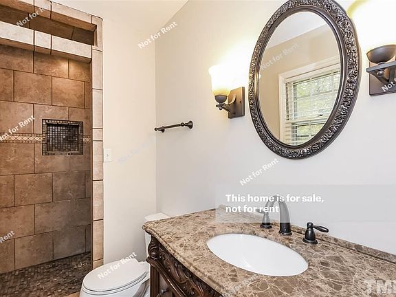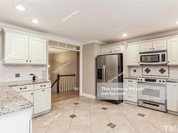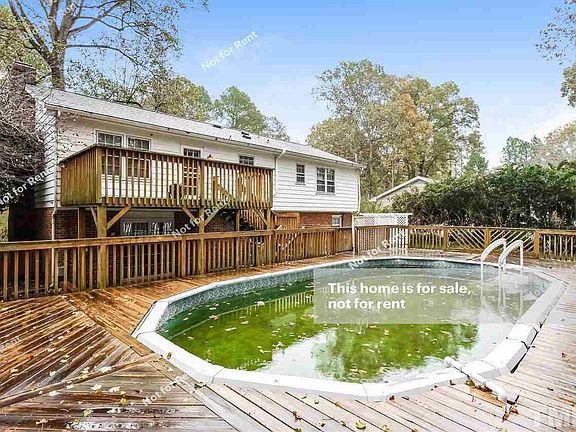 This Garner home offers an above-ground pool, open deck, wood-burning fireplace, stainless steel appliances, granite countertops, and breakfast bar.