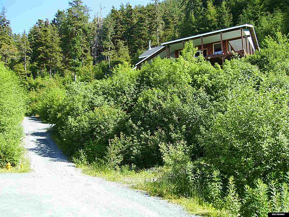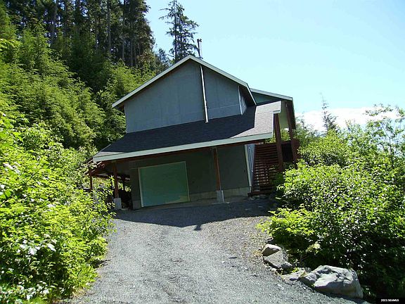 2- story with 1440 square ft living and 480 ft garage. Exterior framing complete with all siding, roofing, windows and doors installed. Foundation and Framing inspections done and approved by Sitka Building Department and logged. City water, power and sewer connection fees paid service into house. Plumbing rough-in complete with installed 60 inch fiberglass shower stall. Wood stove in garage. Large exterior decks with great view of entire Sitka Sound. Quiet, very private. Open studs inside. Plywood floor. Ready to finish to your personal taste and needs.