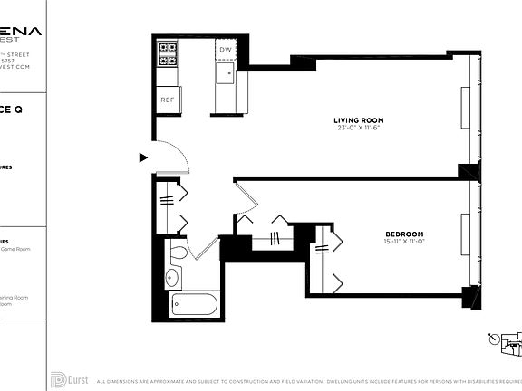 FARE Act Disclosure. This listing is intended to be used by prospective renters and may not be republished without the prior written consent of The Durst Organization. Absent an express written agreement or acknowledgment to the contrary, The Durst Organization and its affiliates (1) do not utilize the services of third-party brokers or agents in connection with the rental of residential apartments and (2) will not assume responsibility for any brokerage fees incurred by a prospective renter. The Durst Organization and its affiliates will not charge or collect fees from a prospective renter except for such fees as permitted by law and disclosed to the prospective renter.