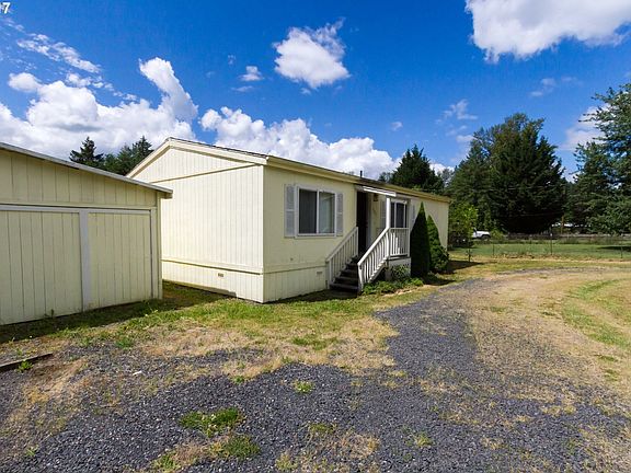 Looking for some peace & quiet in the country? Take a look at this .82 acre property w/nice manufc home in good condition. Vaulted living room and versatile floorplan w/master bedroom on one end of home for privacy & other bedrooms on other end. Nice deck makes outdoor living enjoyable w/nice views & your own grapes. Back of property is fenced. Single-car garage plus separate insulated workshop w/concrete floor & 220 wiring.
