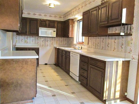 Exceptionally well maintained 4 bedroom home on a large corner lot. Kitchen with plenty of cabinet space. Dining room with patio door to rear deck looking over private backyard. 2 upper level bedrooms with full bath. Lower level features a family room with electric fireplace, 2 bedrooms, ¾ bath and utility room. Access from the garage to lower level. Attached and detached garages offer excellent storage. Located one block south of the school. The dishwasher, microwave and window treatments are included in the sale price.