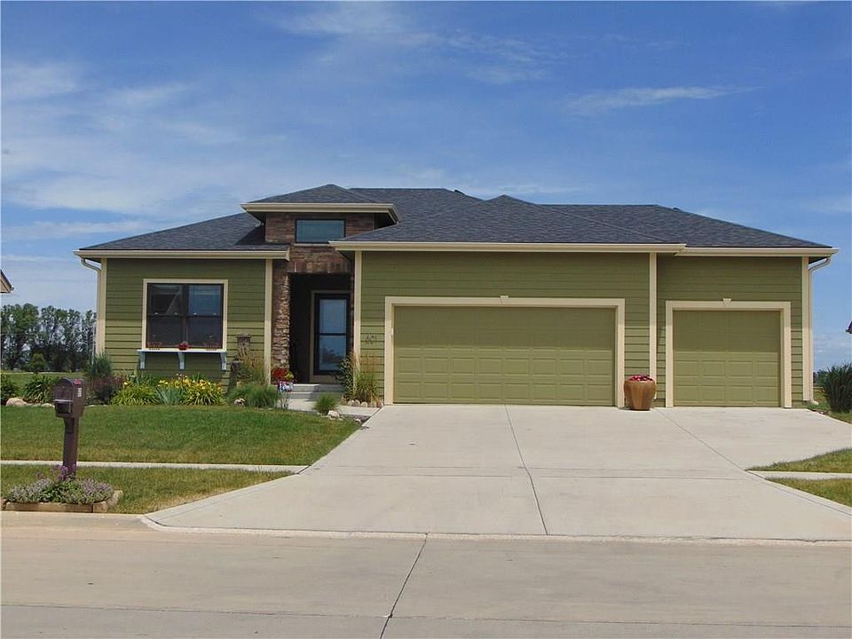 Literally better than new ! One owner home. Immaculate ! Move in ready ! Thousands of dollars of upgrades added by current owners : Lawn irrigation, professional landscaping, storm doors, epoxy garage floor, garage work bench (stays with property), kinetic water softener system. 3 car attached garage with 28' deep 3rd stall. Granite counter tops and birch cabinets. Hardwood Floors in kitchen, entry, mud room and family room with stone fireplace. Lower level has rec room, game area, bedroom, walk up wet bar, and bath. Covered deck off back overlooks open area.