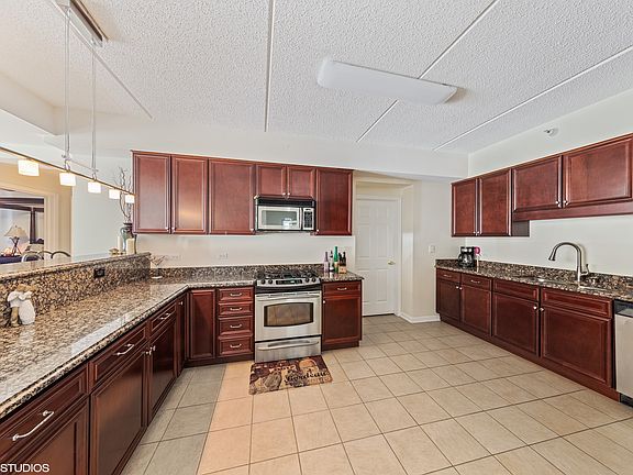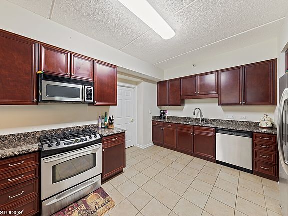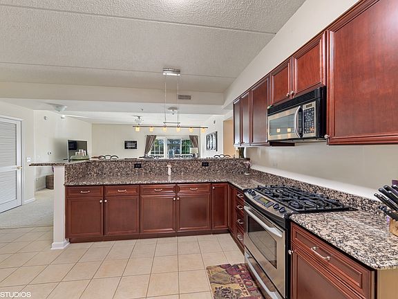 LUXURIOUS CONDO HAS IT ALL! SPACIOUS DUAL MASTER SUITES WITH WALK-IN CLOSETS. BEAUTIFUL TILED BATHS, DUAL VANITY, SEPARATE TUB/SHOWER. DESIGNER KITCHEN W/ CHERRY CABINETS, GRANITE COUNTERS, EXTRA BREAKFAST BAR, STAINLESS STEEL APPLIANCES. SEPARATE LAUNDRY ROOM WITH STORAGE CABINETS/NEW DRYER. HEATED FLOORS, S. CRETE CEILINGS MAINTAIN HEAT AND MUFFLE SOUND. HEATED UNDERGROUND PARKING, LARGE STORAGE SPACE. NICE PATIO FOR OUTDOOR ENTERTAINING. ENJOY THE AMENITIES - PART ROOM AND EXERCISE ROOM! CONVENIENT TO SHOPPING, DINING, TRAIN AND EXPRESSWAYS. REFRIGERATOR IN LAUNDRY ROOM EXCLUDED. PARKING/STORAGE #44.