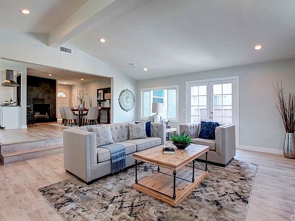 Highly upgraded and professionally designed modern single level three bedroom two and half bath home located on a corner lot. This home has just gone through a complete remodel. Upgraded flooring, upgraded baseboards, new dual pane windows and recessed lighting throughout the home. The kitchens offers stainless steel appliances, upgraded stone counter tops, custom back splash,breakfast bar and brand new custom cabinets. Ample natural light flows through out the home. All bathrooms are updated with modern touches and there there is a individual laundry room. French doors open to the back patio perfect for entertaining and there is a grass backyard. Nearby is dining and entertainment.