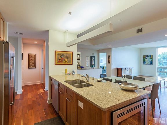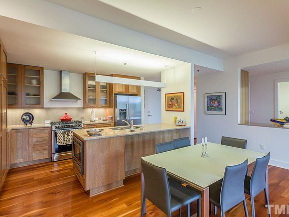 Gorgeous condo near downtown Chapel Hill. Kitchen offers granite countertops and stainless steel appliances. Master bedroom features his/her closest and large master bathroom. Large additional bedroom with WIC. Office area. Oversize open Family Room/Dining Room and Kitchen area. Building includes underground parking, thermal heating, media and fitness room, and sky lounge. Convenient to UNC, shopping and lots of restaurants. Welcome Home!