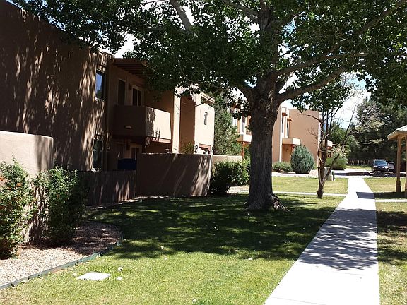 2 Bedroom/2 full Bath downstairs condo in San Mateo Condominium with a walled-in patio in a quiet location in the complex. No interior steps. This unit has been remodeled with new tile through-out, custom paint, and new fans. The unit has hickory cabinets and granite countertops in the kitchen and bathrooms, stainless steel appliances which includes a dishwasher and built-in microwave, and 1 year old washer/dryer, air conditioning and high quality Pella windows and patio door. San Mateo de Santa Fe Condominium has a great location just off St. Francis Dr. and San Mateo near the Cordova Rd. shopping center and St. Vincent Hospital. Very close to Trader Joe's, Whole Foods and Natural Grocers. About 10 minutes to the Plaza in downtown Santa Fe with a bus stop right in front of the complex. The complex is clean and well managed and has a very nice pool and a fitness center. There is a gated entrance and the units are well spaced among the 11 acres of nicely landscaped property with grass and mature trees. This is a dog-friendly community and there is a separate dog run. Tenant pays electricity and water/sewer. The entire property is non-smoking inside the units as well as outside. Well-behaved dogs allowed but must be spayed or neutered per the condominium association rules.