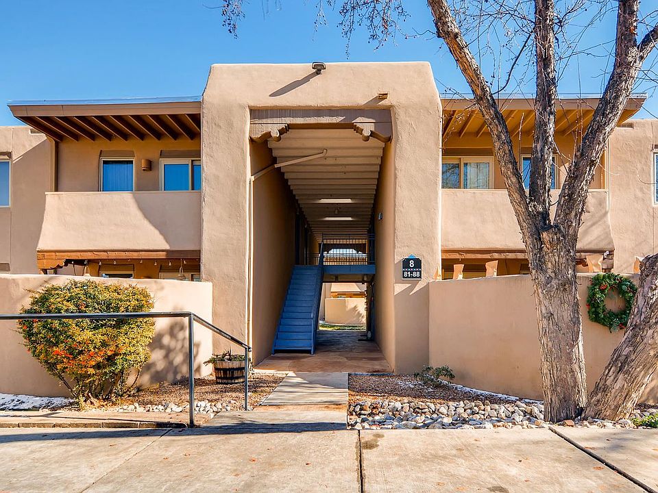 Likely, the last opportunity to own a 2 bedroom unit for under $200K at San Mateo and it won't last long. Premium, quiet location, this unit is situated on a rare, private, & desirable private lane setting within this gated community which boasts a beautiful pool and workout facility. Check out this completely remodeled in 2006 unit. This single-level, end-unit has all the upgrades associated with newer construction: granite counters, stainless appliances Pella doors and windows. Enjoy your own private back courtyard with covered portal ideal for outdoor entertaining and pets. Many errands can be accomplished on foot and by bike from this convenient location. There are many restaurants, shops and dining options within a 15-minute walk including Iconik Coffee, Backroads Pizza, 2nd Street Brewery, Chocolate Maven and Anytime Fitness. And within a short half mile you can access the Santa Fe Rail Trail where you can enjoy miles of walking, jogging and biking. In addition, excellent cell service, and a carport for rent make this home an excellent value for you to enjoy the ideal urban lifestyle. Whether a Millennial, Baby Boomer or 2nd Homeowner, this home is for you!