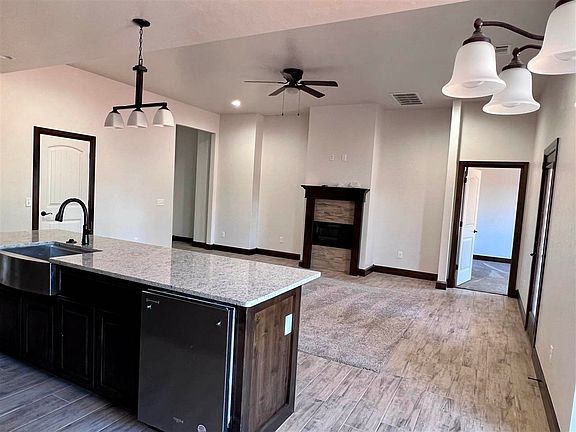 This adorable 1550 sq ft, 3-bedroom, 2 bathrooms with 2 car garage home is ready for a family to call its own. Custom cabinetry, granite countertops, Electric Fireplace, counter height breakfast bar and wood-look ceramic tile are just a few of the amenities you will find in this new construction that is just across the street from the Fletcher Park, Splash Pad and Baseball fields. This home has a huge walk-in pantry, large laundry room with lots of storage and folding space, a large entry closet and two closets in the primary bedroom. Will include Wood Privacy fence and sod. Take a look at the 3D tour then give Listing Broker, Debbie McDonald a call with any questions or to take a look! 580-695-8552.