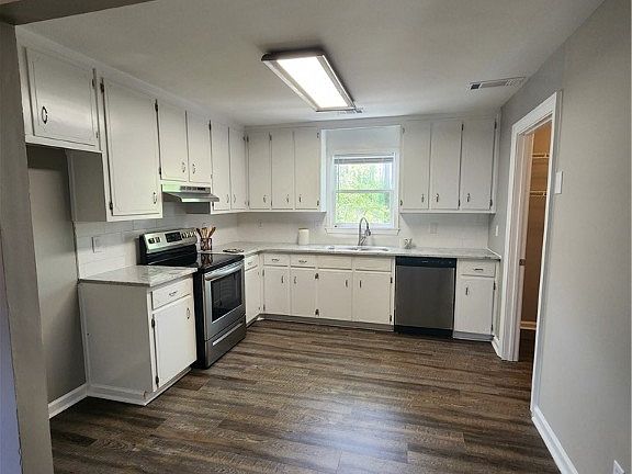 Stunning!!! 3 bedroom by 2 bathroom, 2 story home with primary room on the main features NEW carpet and Luxury vinyl tile, Stainless-steel appliances (no Fridge), The Large and grill ready Back Porch, tall vaulted ceiling and a Stone fireplace in the living room!!! Not to mention the picturesque yard, the large garage and the custom Barn doors leading to a bonus room. Lot is complete with mature trees, a shed and fence! Perfectly located minutes from down town Winder, several shops, restaurants and a public lake! Home also features metal roof.
