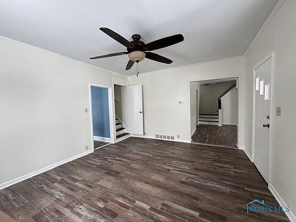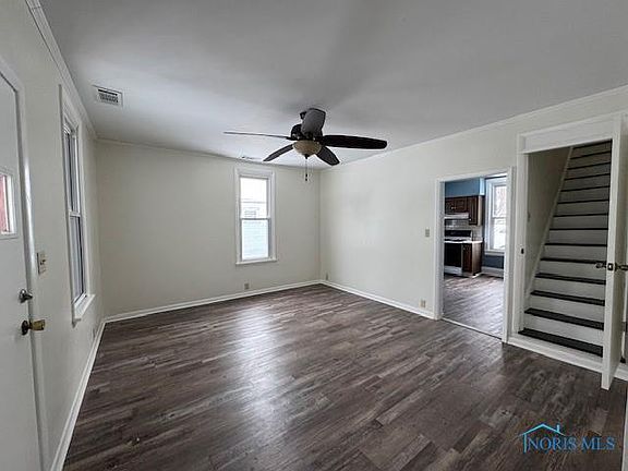 All the work is done! Nice updated home with new laminate flooring throughout. Front and back staircases. Main bath is completely new. Fully functional kitchen with appliances to stay. Extra upper room could be 4th Bedroom! Nice wrap-around porch with 2 separate entrances. Parking in driveway for 3 vehicles and large fenced in yard.