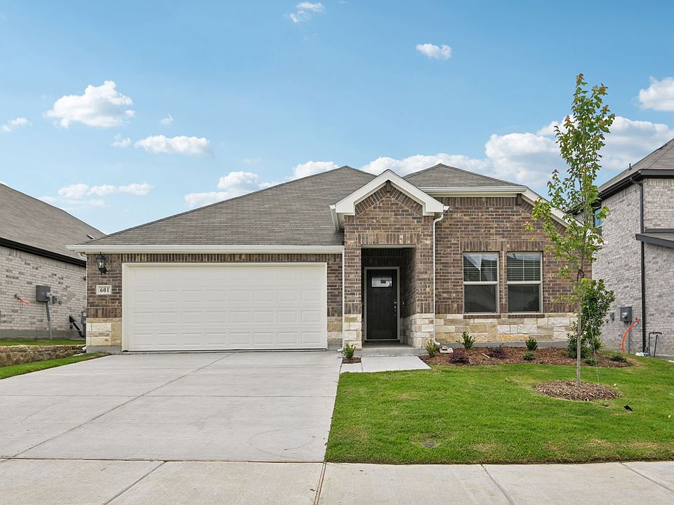 Brand new, energy-efficient home available by Apr 2025! The spacious living area flows seamlessly outdoors to the covered back patio. Umber cabinets with shaded grey granite countertops, brown grey EVP flooring with light grey brown carpet. Ditch your long commute with quick access to McKinney, Frisco, and Richardson on US 380 and spend more time doing what you love. Play fetch at the nearby dog park or bike the miles of Simpson Crossing’s trails and greenspace. Kids will love the community playground and resort-style pool. We also build each home with innovative, energy-efficient features that cut down on utility bills so you can afford to do more living.* Each of our homes is built with innovative, energy-efficient features designed to help you enjoy more savings, better health, real comfort and peace of mind.