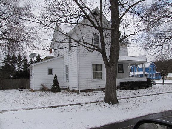 Nice natural hardwood floors and woodwork throughout compliment this 3 bdrm. home w/ a large kitchen that includes all appliances. The convenient 1st floor laundry has an adjoining half bath. The home has: many extra storage built-ins, a master bedroom with large walk-in closet, a new natural gas furnace and a new roof in 2013, a partially finished basement has room for a family room, a nice wrap-around porch and a 2 car detached garage. Property is on corner double lot with some privacy fencing.