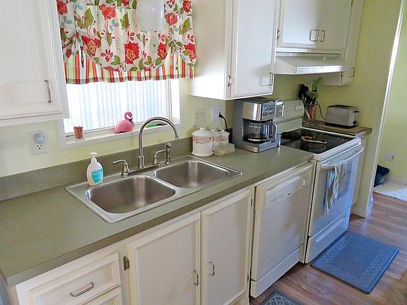 Nice TWO Bedroom, TWO Bath home has a split floor plan, both bedrooms are en-suites, nice for roommates! Both bedrooms have walk-in closets. Waterproof flooring throughout. Double pane windows in Front Florida room to help repel heat and cold. The rear Florida room has rubber roof coating and offers you plenty of space to spread out - quietly. Wide drive helps with parking woes. 2022 ROOF.