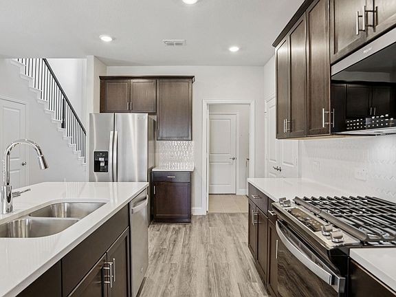 Brand new, energy-efficient home zoned for McKinney ISD with washer, dryer, and refrigerator included! You will be greeted with18 foot entry ceilings. Turn the kids loose in the second-story loft space while hosting downstairs in the open concept living area. The kitchen has lots of cabinets with white quartz countertops, island, and gas range. Play fetch at the nearby dog park or bike the miles of trails and greenspace. Kids will love the community playground and resort-style pool. The energy-efficient features like the tankless water heater cut down on utility bills so you can afford to do more living. The backyard has a covered patio with a gas stub out for a grill. Schedule and showing and check out the neighborhood today!