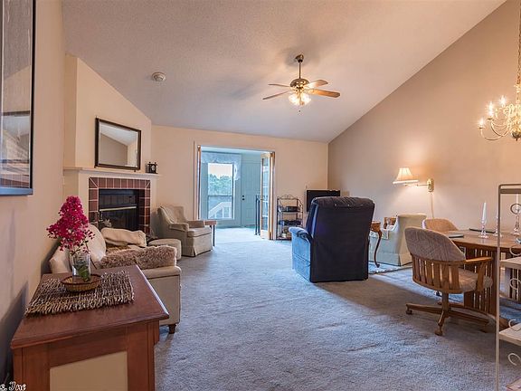 Excellent buy! (3/3) Ask about why low utilities. When strolling the subdivision, the streets are well lighted. Unit 6 expanded on two levels and overlooks fairway 18. The large living room has a cathedral ceiling/fireplace. The kitchen has been completely renovated with energy efficient appliances and a breakfast bar. It leads to laundry area, pantry, and one car garage. MBR is a large suite. Second bedroom used as office. Lower level has bath, bedroom, & sitting area. Interior and exterior staircases.