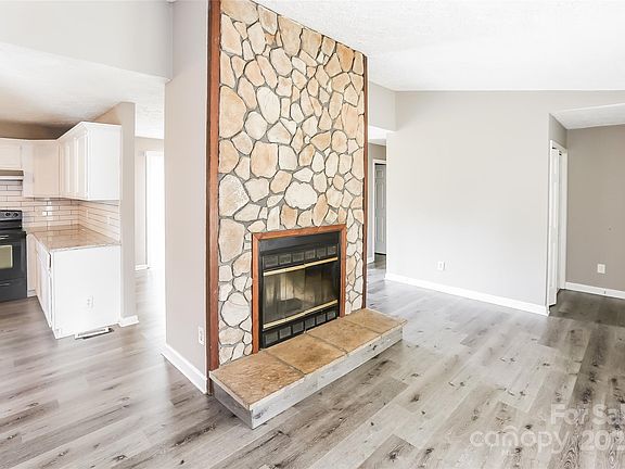 This charming 3-bedroom, 2-bath home features a welcoming front porch, stylish LVP flooring, and a cozy fireplace in the living room. The kitchen offers crisp white cabinets, while the split floor plan highlights a private primary suite with en-suite bath, separated from the other bedrooms.