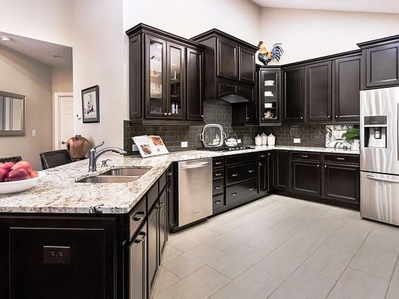 MOTIVATED SELLER! Elegant Villa Condominium home in Obie Award winning Active Adult Community. Exclusive features include heated and cooled lanai, custom designed closets, plantation shutters. Kitchen is stunning focal point w/high end granite, rich espresso stained cabinetry, upgraded SS appls, gorgeous tile and hrdwd flooring. Luxurious master bath suite. Spacious and open floor plan with cathedral ceilings. Bonus rm with full bath. EZ walk to clubhouse/pool. Enjoy maintenance-free living with resort type amenities. Gated/completely fenced for "Lock and Go" lifestyle.
