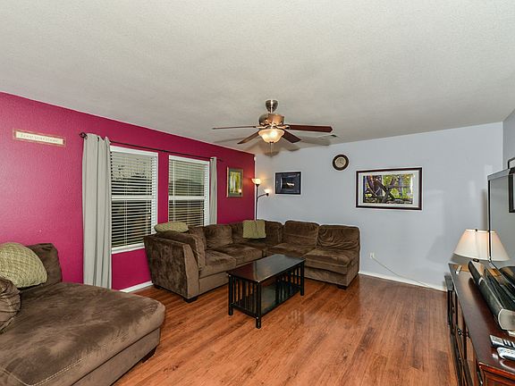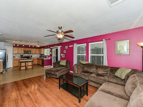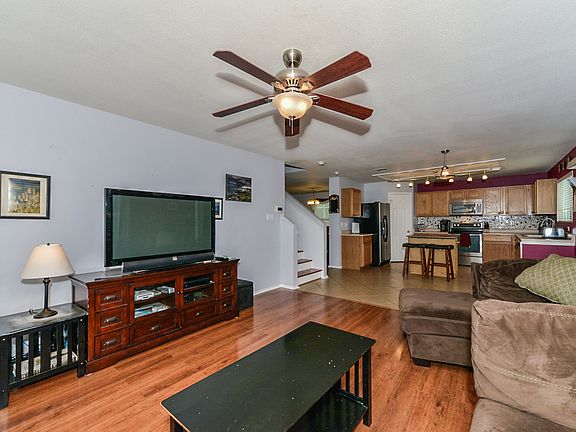 A spacious residence offering a layout that maximizes the use of the ample square footage. Three living areas, two downstairs & one up offers enough space to curate a game room, media room, or exercise area. Gorgeous wood-look tile floors, high ceilings, new interior paint & new carpet plus a stunning kitchen looking out onto the huge covered patio. Stainless appliances, eye-catching backsplash & new track lighting modernize the room as it opens to the family gathering space. A pristine turnkey property.