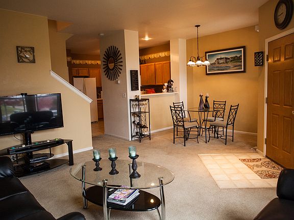 Across the street from Snowy Mountain Park and just blocks away from D-49 schools and close to the Powers Corridor this townhouse is very centrally located. On the outside edge you'll have great access to the street. It has two upper level bedrooms and two upper level bathrooms. The living, dining area and kitchen flow nicely on the main level. With access to your own attached two car garage.