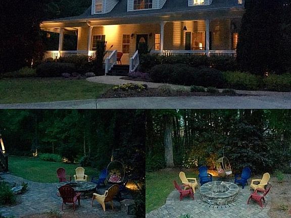 WOODED RETREAT OF YOUR VERY OWN ON 8 ACRES W/HOME PLUS PHOTO STUDIO. Unique property with an awesome guest house. This property is made to enjoy the outdoors. Extensive, gorgeous landscaping, upscale outdoor lighting, large fire pit, Rainbird Irrigation system & invisible fence. Home features wrap around porch, huge deck & full finished basement with full kitchen, separate laundry room with washer & dryer, living room, walk-in closet and bedroom. Truly a one of a kind property.