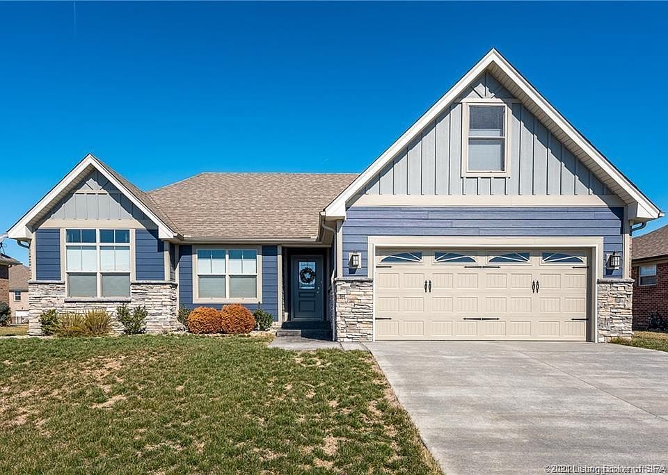 Open House Saturday, July 3 from 1:00-3:00 PM. Award winning Floyd Central School District and a convenient 10 minute drive to the to New Albany and 15 minutes to Louisville for anyone looking to commute. Enjoy the convenience of being just off of the expressway and the piece and quiet of country living. Covered and inviting front porch and foyer, laundry / mud room, and kitchen with breakfast bar, granite countertops, and stainless steel appliances. Living room with vaulted ceiling and sliding doors leading out to the back patio. Main bedroom equipped with large walk in closet, double vanity sinks, walk in shower, and garden tub. Two car attached garage with keyless entry. 4th bedroom is a bonus room. Home is (and always has been) smoke free and pet free. Clubhouse and Pool to be added to subdivision.