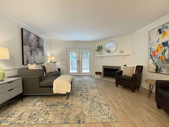 Beautiful townhome with bright open floorplan fresh paint throughout and new carpet in popular Northclift Village SWIM community in the heart of exciting MIDTOWN! Entry area has tile floor and dramatic floating hickory wood staircase! Spacious Family room with fireplace and hardwood floor. Dining room with hardwoods, stylish lighting and pass through to the kitchen. Sunny Kitchen has designer CAFE refrigerator and range with dual ovens, plenty of cabinets and counter space, granite countertops, tile backsplash and pantry. Powder room with raised bowl glass sink and marble floor. Primary bedroom with ceiling fan and lots of closet space. Primary bath has marble flooring, walk in shower and marble top vanity. 2nd bedroom with ceiling fan and view of the wooded backyard. Private fenced courtyard has travertine tile patio and view of the woods. Additional features include exterior storage and NEST thermostat. Front load Washer, Dryer and Refrigerator convey! Location, Location, Location!--Close to North Hills shopping and dining, I-440 and more!! The HOA dues include water, roof and pool!