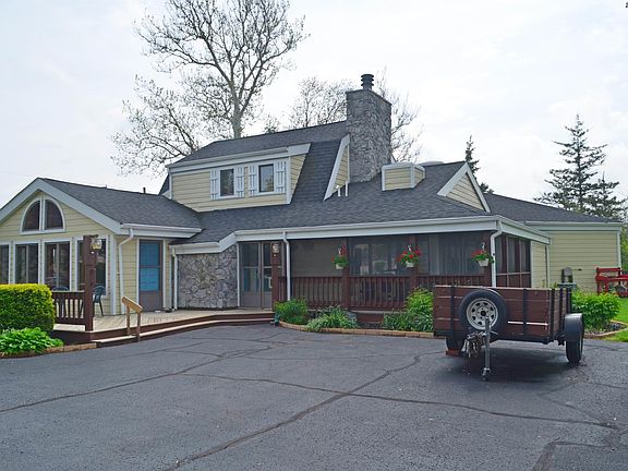 Introducing a house that truly has it all! Nestled in Syracuse, IN; this gorgeous channel house boasts over 250 feet of frontage with easy access to the largest natural lake in Indiana with breathtaking panoramic views of iconic Lake Wawasee. This 4 bedroom, 3.5 bath home spans across 2,890 square feet of luxurious living space, and is equipped with all the right features to make it your dream home. As you step inside, you'll be greeted by a large great room with a cozy fireplace and a lovely 4 seasons room. The master bedroom is truly a relaxing space conveniently located on the main floor with a beautiful master bath. Owning your own island means every room has a view of the water! The house also features a detached three-car garage with a floored attic for storage, and a finished guest suite attached to the garage that can be used as an office or bedroom. The location is perfect for those who enjoy the outdoors. Whether it's fishing, swimming, frog/turtle hunting, or taking a stroll on the walking trails by the lake, this set up is legendary. When it's time to take a dip to cool off, this house has access to Kale Island beach, which is just a few steps away from the driveway. This remarkable house is not just a place to call home, but a lifestyle. It offers you the opportunity to own a one-of-a-kind property that is perfect for entertaining and enjoying the breathtaking views. So why wait? Don't miss out on this exceptional chance to own your own piece of paradise. Contact us today to schedule a viewing and experience the beauty of this lakefront home for yourself